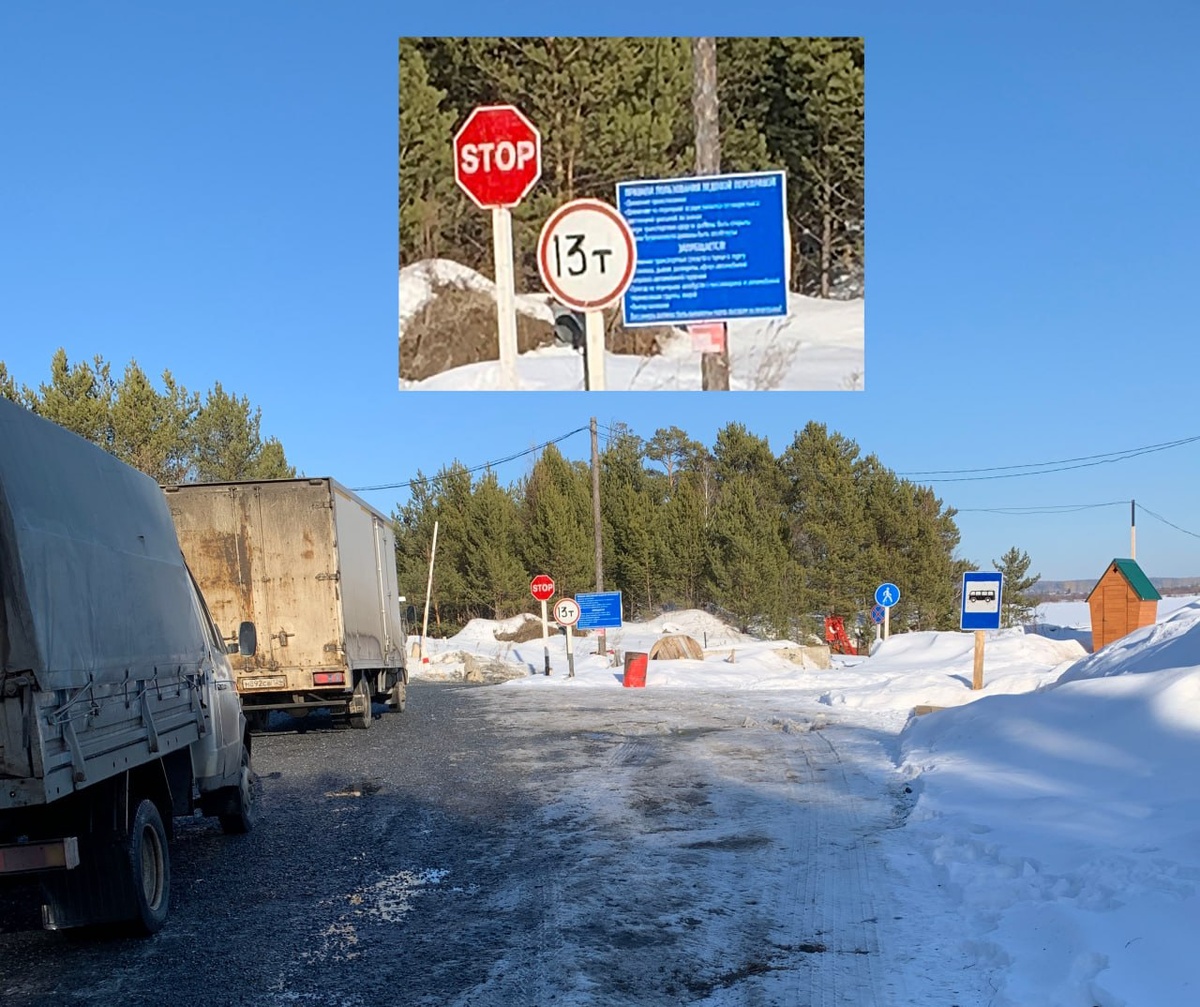 Енисей на 139 км автодороги «Мотыгино – Широкий Лог» в Енисейском районе Красноярского края. В связи с прогнозируемой положительной уличной температурой воздуха комиссия АО «Лесосибирск-Автодор» выполнила контрольные замеры толщины ледового покрова. В результате анализа установили, что структура льда стремительно разрушается и начинается подмыв толщи льда снизу. Было принято решение о снижении грузоподъемности до 13 тонн.