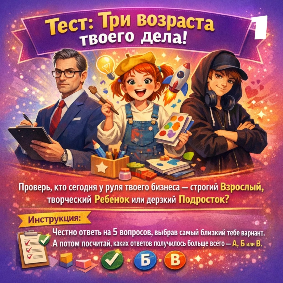? Друзья, марафон «Архипелаг эксперта» продолжается! 👋 ☺️ ПРОЙДИ ТЕСТ, чтобы взглянуть на себя со стороны и честно ответить А кто же я чаще всего в своём деле — заботливый Взрослый, творческий Ребёнок или дерзкий Подросток? Тест и все вопросы — в карточках, которые прикрепила к посту. Листайте карусель, выбирайте ответы и ловите инсайты. Желаю вам удачи! 🤍 И пусть у вас БУДЕТ ДОХОД, который позволит реализовывать все самые смелые Ваши мечты. С любовью, Татьяна Михиенко ❤️ Жду ваши ответы в комментариях! #архипелагэксперта #тест #позициивбизнесе #психологияэксперта #архипелагэксперта #психологияэксперта #позициивосприятия #мышлениеэксперта #заработокэксперта