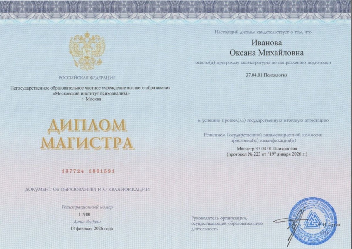 Сегодня я официально получила диплом магистра психологии в Московском институте психоанализа