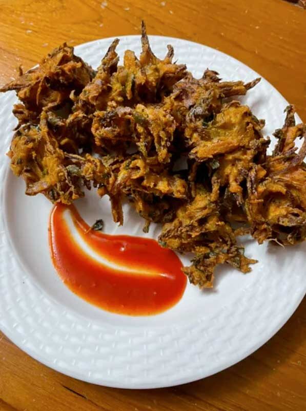 ✔️ Lachcha Onion Pakoda Это простое блюдо — очень популярный рецепт, который готовят в качестве вечерней закуски к горячему кофе/чаю. По сути, это обжаренные во фритюре луковые оладьи, приготовленные из нутовой муки, рисовой муки и специй. Тесто для пакоды готовится из тонко нарезанного лука и свежей зелени, смешанной с нутовой и рисовой мукой. В качестве специй используется или зеленый перец чили, или молотый чили, иногда и то, и другое. Для придания пакоде особой хрустящей корочки в тесто добавляется горячее масло. Тесто средней толщины обжаривается во фритюре небольшими порциями до золотисто-коричневого цвета и хрустящей корочки. Луковые лачча пакоды обычно подают в качестве закуски с кокосовым чатни или томатным кетчупом. В дождливый вечер их можно подать с чашкой горячего кофе/чая. ⏳ Время приготовления: 20 мин. 👪 4 порции 📜 Что понадобится: 3 луковицы среднего размера 2 веточки измельченных листьев карри (10-15 шт.) несколько измельченных листьев кориандра (по мере необходимос