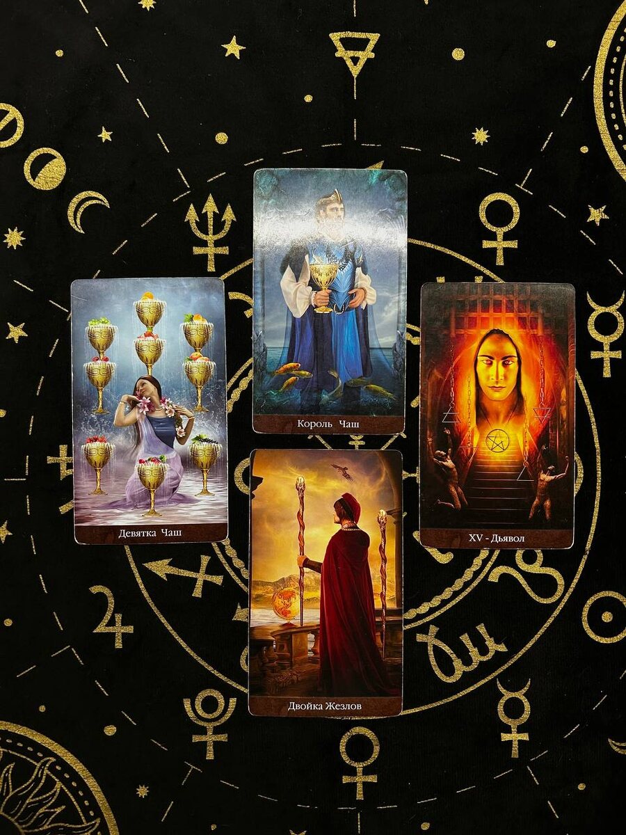 Продолжаю рубрику разборов ваших обращений. Сегодня ситуация, которая тянется годами и выпивает все соки. Классика зависших отношений на расстоянии. Вопрос: – Жду его 5 лет. Я в Америке, он в Армении. Любим друг друга, общаемся, но ничего не меняется. Я замучалась, он меня не отпускает, а я никого другого не хочу. Чем закончится эта связь? Карты: Король Чаш, 9 Чаш (скрытая выгода), 2 Жезлов, Дьявол. Контекст истории: Клиентка живет в режиме ожидания. Есть чувства, есть редкие встречи и переписка, но нет реальных шагов к совместной жизни. 5 лет — огромный срок, за который ситуация превратилась в день сурка. Трактовка карт: Король Чаш Это образ самого мужчины. Он добрый, понимающий, умеет красиво сопереживать. Он идеальный «эмоциональный пластырь». Но Король Чаш — это не про действие, это про чувства. Ему комфортно быть любимым на расстоянии, он царит в сердце, не обременяя себя бытовыми трудностями. 9 Чаш (Скрытая выгода) Почему всё стоит на месте? Потому что обоим это... удобно.