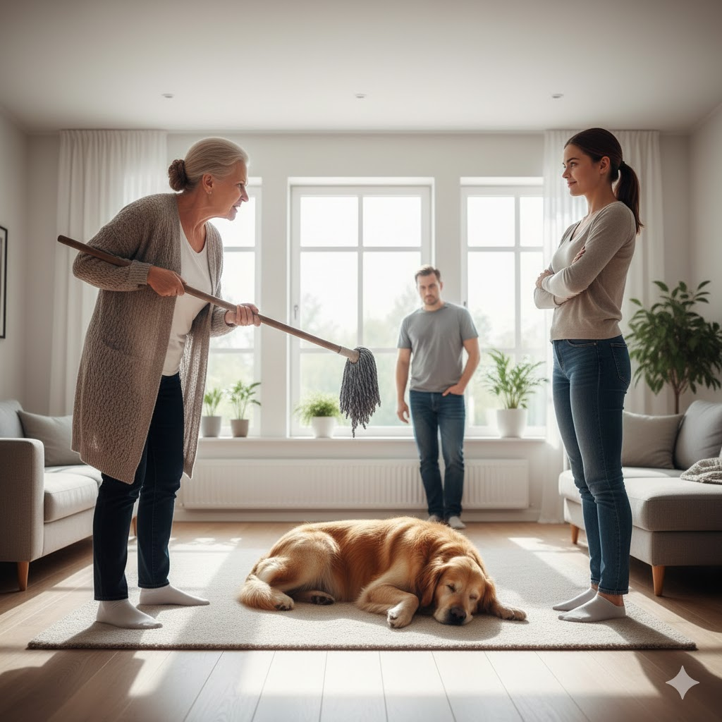 — А ну-ка убери эту псину! Живо! Она на ковер надышала, шерсть повсюду, зараза одна от неё! — Галина Ивановна стояла в центре моей гостиной, тыча шваброй в сторону мирно спящего золотистого ретривера. — В этом доме хозяйка я, потому что мой сын здесь главный! А значит, и я здесь закон. Либо эта шавка выметается на улицу, либо я за себя не ручаюсь!