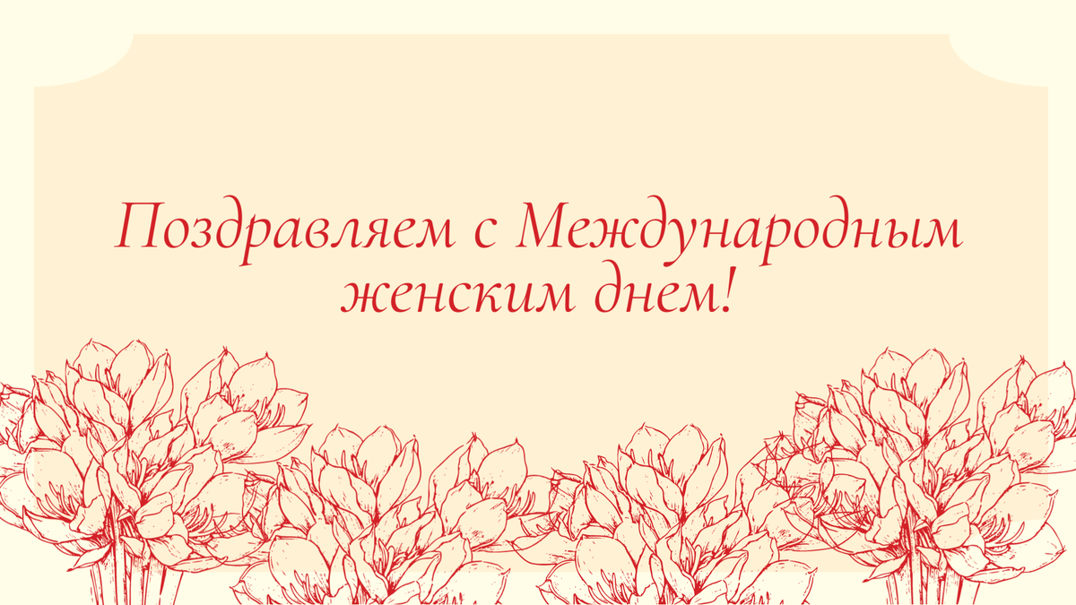 Поздравляем вас с Международным женским днем! Желаем вам безграничного счастья, душевного спокойствия и постоянных успехов во всем. Пусть вас окружает только тепло близких людей, а первые весенние дни принесут еще больше радости и уюта. С праздником!