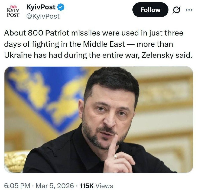 По его словам, страны региона за три дня выпустили около 800 таких ракет, тогда как у Украины за весь украинский конфликт их было меньше. В обмен Киев готов передать этим государствам дроны-перехватчики ✅Мы в MAX 🎁Поддержать