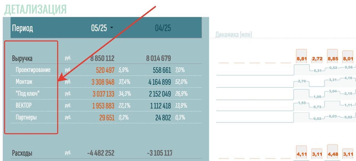 ? СПЕЦИАЛЬНО ДЛЯ ТЕХ, КТО ВСЁ ЗНАЕТ И ГОВОРИТ, ЧТО ВЕЗДЕ ПРОСТЫЕ ПРИМЕРЫ)) Сейчас я вам расскажу ситуацию, когда бывает действительно сложно. Представьте себе компанию, которая занимается различными направлениями, как на скриншоте: есть и проектирование, и монтаж, и что-то мы под ключ делаем, и есть партнерская история… ➡️ 3 основные сложности: 1️⃣ По каждому направлению — свое юрлицо, но затраты управляющей компании на бухгалтеров и юристов, которые обслуживают все направления, ведутся только с одного конкретного юрлица — все платежи идут именно оттуда. 2️⃣ По каждому юрлицу разные собственники-учредители, разные партнеры, их разное количество, разная вовлеченность, и самое главное — разные условия распределения прибыли (читай: различается дивидендная политика). 3️⃣ Кроме того, между всеми этими направлениями есть еще и внутренние перемещения денег, которые где-то не оформлены никак, где-то проходят займами, где-то просто забыли отразить. А целевая задача собственника — увидеть