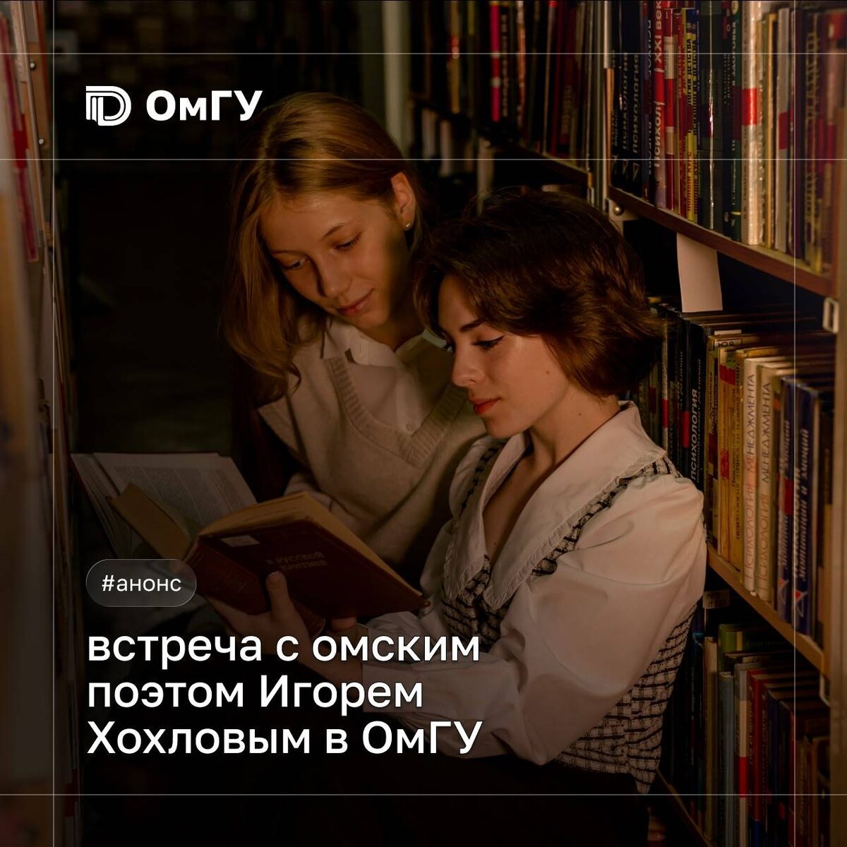 Встреча с омским поэтом Игорем Хохловым на факультете филологии, переводоведения и медиакоммуникаций ОмГУ. Участники смогут пообщаться с членом Союза российских писателей, лауреатом премии имени Достоевского. Начало: 10 марта 2026 16:15 Стоимость: Бесплатно Адрес: г Омск, пр. Мира, 55 Организатор: https://vk.com/public58265344 📚 В ОмГУ пройдет встреча с омским поэтом Игорем Хохловым На факультете филологии, переводоведения и медиакоммуникаций ОмГУ состоится творческая встреча с омским поэтом и выпускником университета Игорем Хохловым. Ее участниками смогут стать студенты, преподаватели и сотрудники вуза. Приглашенный гость – член Союза российских писателей, лауреат областной литературной премии имени Ф.М. Достоевского, финалист XVII Международного... #искусство_и_дизайн_поэзия Узнать подробности, адрес или записаться на событие.