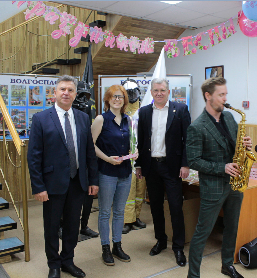Прекрасную половину человечества под красивое музыкальное сопровождение поздравили с наступающим праздником 8 марта спасатели ГКУ "Волгоспас". Женщинам-коллегам мужчины подарили отличное настроение. В преддверии Международного женского дня 8 марта, с весенними цветами и сладкими подарками прекрасных дам на входе в учреждение встречали их коллеги-мужчины. Затем, в актовом зале Министр региональной безопасности Астраханской области Александр Тимофеев и начальник ГКУ "Волгоспас" Александр Меретин в торжественной обстановке поздравили сотрудниц спасательной службы с праздником. Они пожелали женщинам любви, счастья, семейной гармонии и прекрасного настроения. Кроме этого прошла церемония вручения Благодарственных писем от Министерства региональной безопасности и Областной спасательно-пожарной службы Астраханской области. Цветы и комплименты мужчин героической профессии не оставили женщин равнодушными.