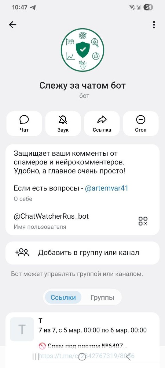 Стоит у меня месяца три. До этого ставила разные - не справлялись. На скринах утренний отчёт - семь штук отловил. Бесплатный, толковый. Ему можно помогать - отмечать спамные и автокомментарии эмодзиками 🙈👾 и он их подметёт под коврик. Установка такая же простая: бота в админы, канал в бота. В МАХ его пока не нашла. #ботоведениеTelegram