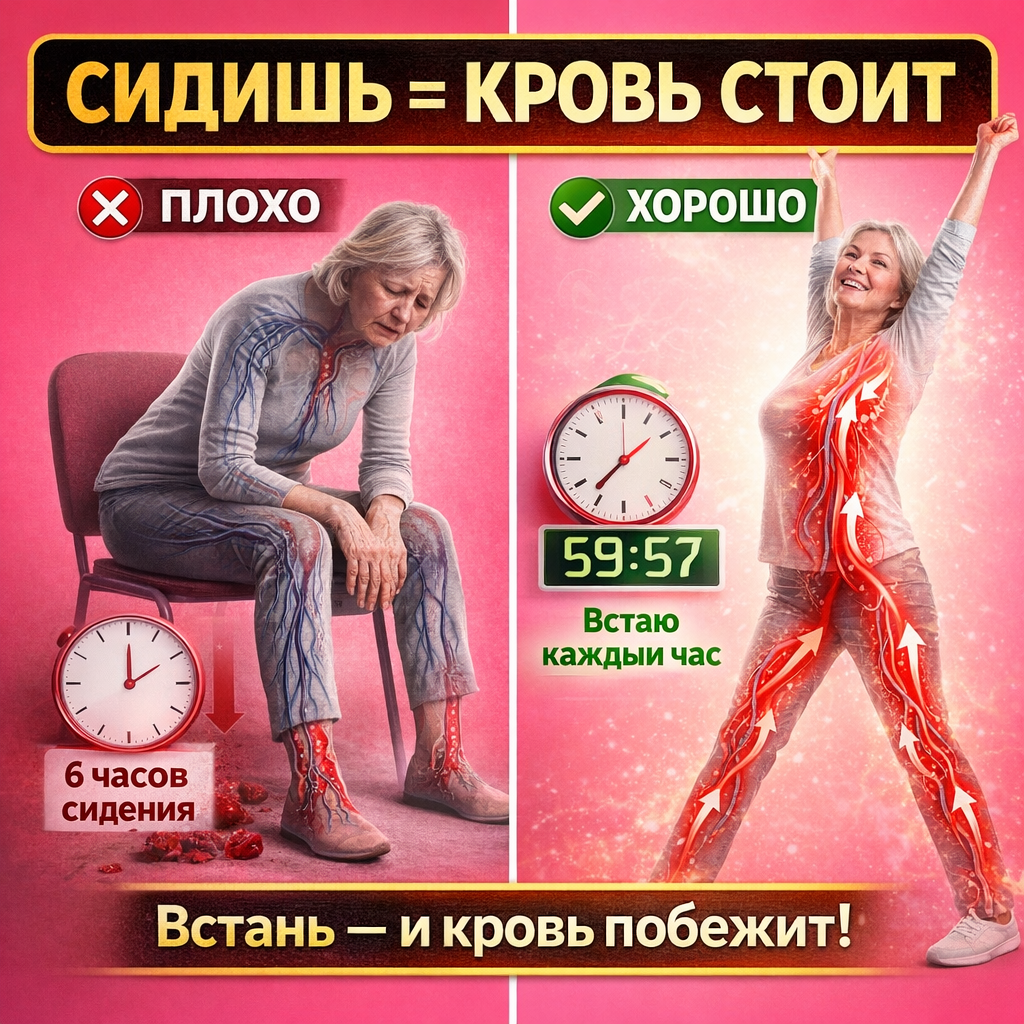 Руки мёрзли даже летом, а ноги немели к вечеру. Виновата оказалась одна утренняя привычка! Мне было 62, когда я поняла: что-то не так. Руки постоянно холодные. Пальцы немеют, если сижу больше часа. Ноги к вечеру как ватные — встаю, и кажется, что кровь туда вообще не доходит. Думала — возраст, что поделать. Но однажды моя подруга-врач спросила: «Галь, а ты случайно не сидишь целый день?» И тут меня осенило. После 60 лет наше кровообращение и так замедляется. Это естественно. Сосуды становятся менее эластичными, сердце работает не так бодро, как в 30. Но когда мы ещё и сидим по 8–10 часов в день — мы буквально душим свою систему кровообращения. Вот что происходит: Я не врач, но когда мне это объяснили — всё встало на свои места. Я сидела за компьютером по 6 часов (вязание, переписка, сериалы), потом на диване, потом снова на стуле. Вставала только в туалет и на кухню. И моё тело кричало: «Хватит!» Я не стала бегать марафоны и записываться в спортзал. Просто начала вставать каждый час.
