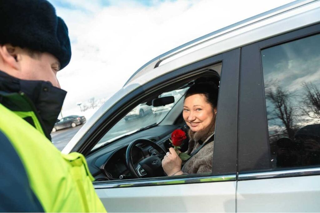 Сотрудники Госавтоинспекции подарили нижегородкам цветы в преддверии 8 Марта