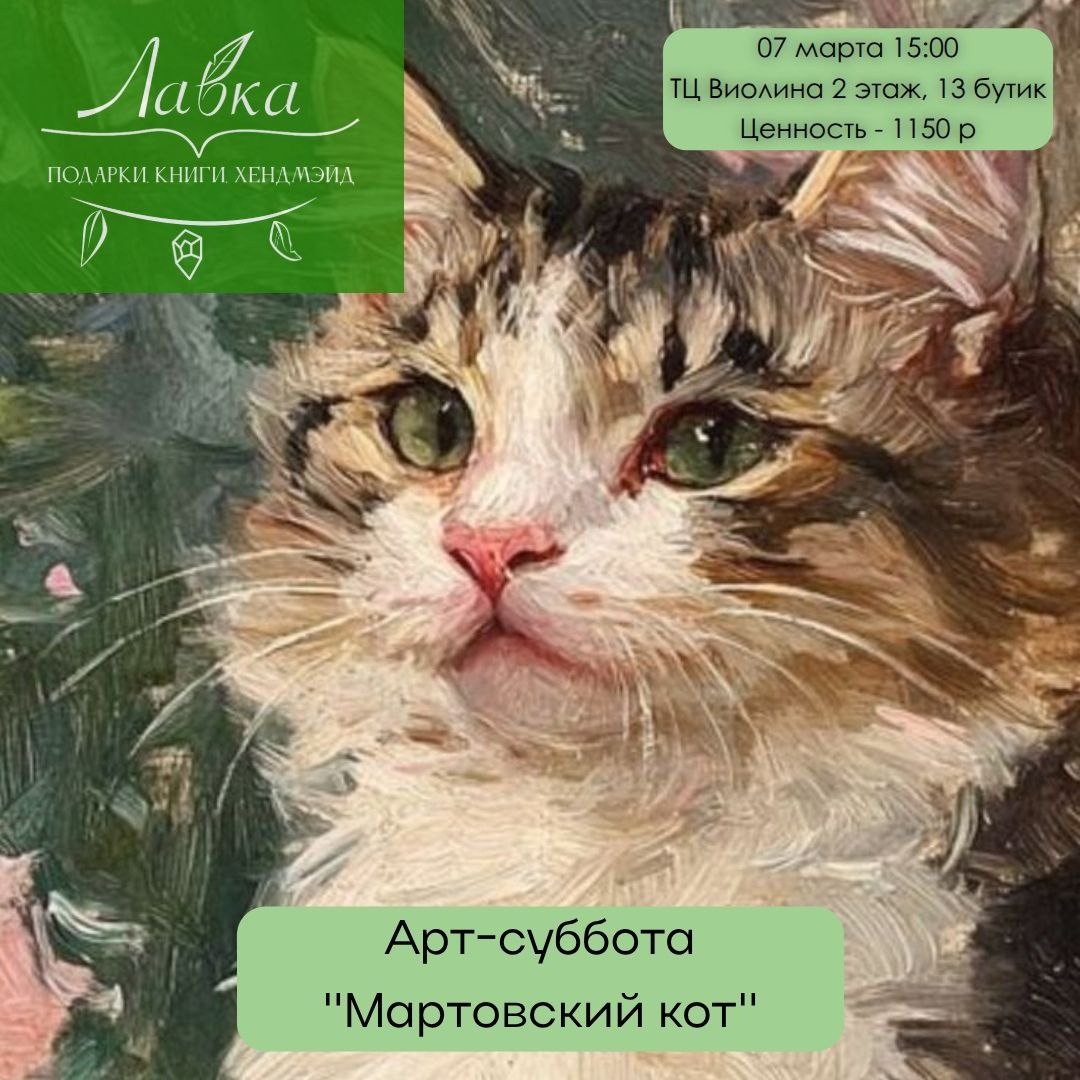 МК по котикам Организаторы предлагают нарисовать усатых-полосатых вместе с Анастасией Ильиной. 🕐7 марта, 15:00 🪙1150 рублей Коллажная вечеринка Хозяйка Лавки зовет в гости мам, на коллажную вечеринку, чтобы в честь праздника создать новую себя. 🕐8 марта, 11:00 🪙600 рублей 🔑записаться на мероприятия можно у @osamuilova или по телефону 89144983290 Предложить публикацию:@zabkulisye_bot Забкулисье в MAX