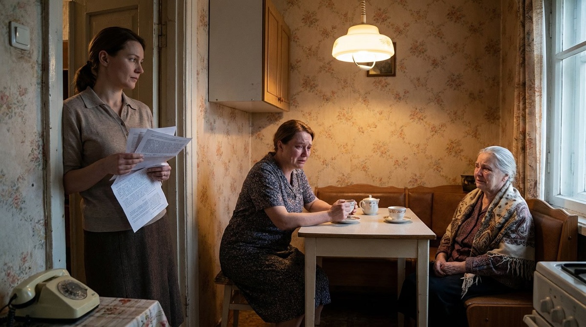 Мама поставила сумки на пол и долго смотрела на стол. Потом начала понимать. Потом просто положила ладонь поверх руки дочери и долго молчала.