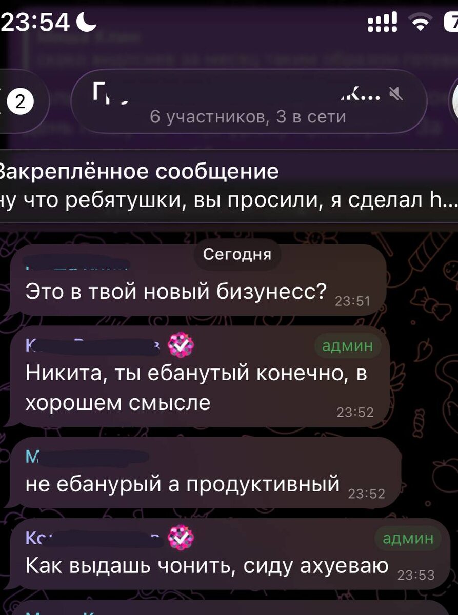 Коля написал в 23:52: «Никита, ты ебанутый конечно, в хорошем смысле