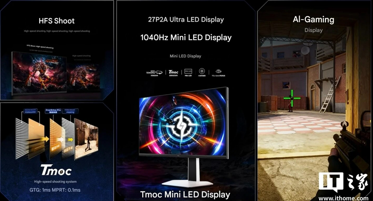 TCL представила игровой монитор P2A Ultra mini LED с пиковой частотой обновления 1040 Гц