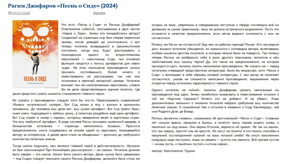 Рагим Джафаров «Песнь о Сиде» (2024) | Критика