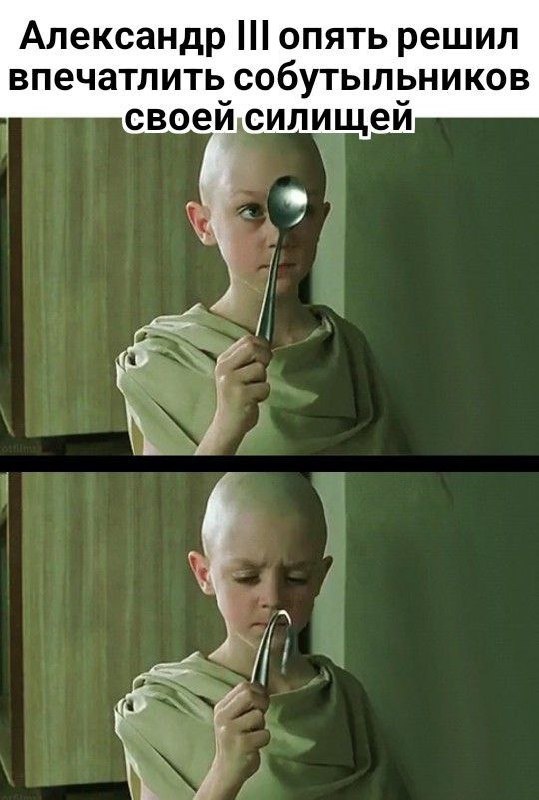 Царь делал вид, что не замечает его раздраженного тона. Посол разгорячился и даже намекнул на возможность, что Австрия мобилизует два или три корпуса. Не изменяя своего полунасмешливого выражения, Император Александр III взял вилку, согнул ее петлей и бросил по направлению к прибору австрийского дипломата:- Вот, что я сделаю с вашими, двумя или тремя мобилизованными корпусами, - спокойно сказал Царь." Я так понимаю это из воспоминаний Александра Михайловича Романова. #снамиБог #романовы
