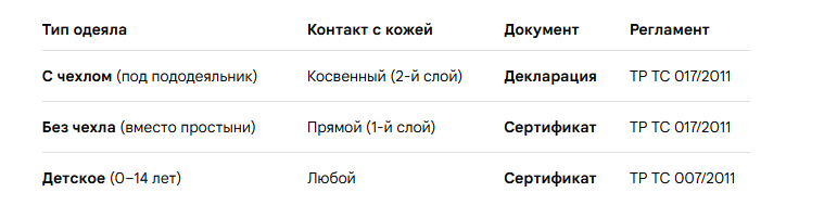 Тип разрешительного документа зависит от того, как ваш покупатель будет использовать одеяло.