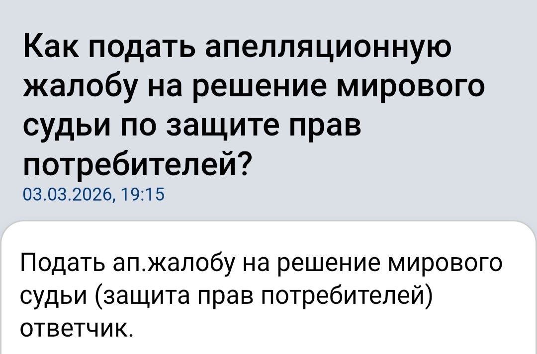 Апелляционная жалоба на решение мирового судьи по делу о защите прав потребителей подается в районный суд через того же мирового судью
