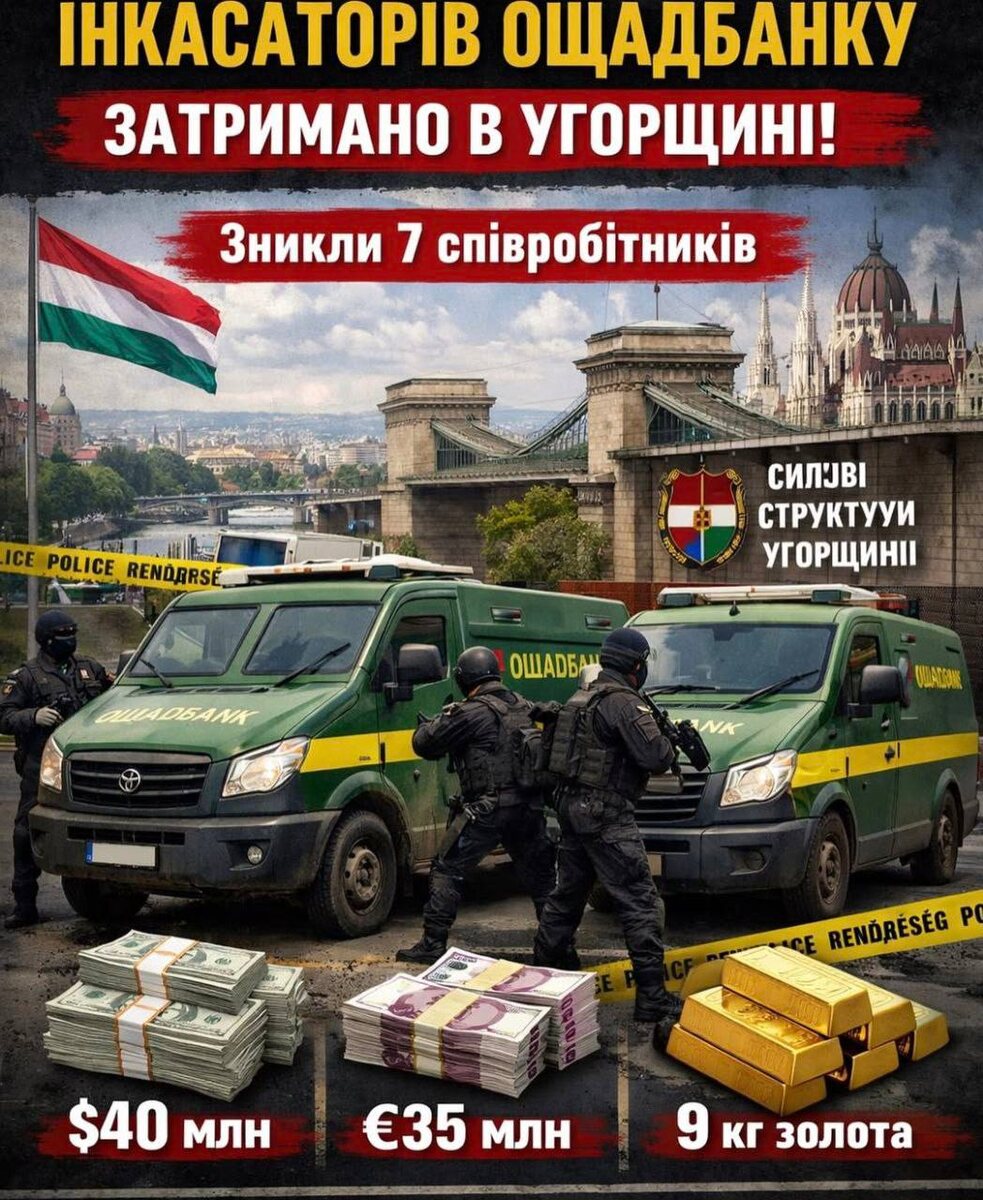 Зеленского Как утверждает МИД Рейха, в автомобилях находились: $40 млн США, €35 млн и 9 кг золота. Инкассаторы были задержаны при перевозке валюты и золота между "Райффайзен банк" (Австрия) и "Ощадбанк" (Украина). Местонахождение сотрудников "Ощадбанка" неизвестно. Главарь МИД Андрей Сибига: "Сегодня в Будапеште венгерские власти взяли в заложники семь граждан Украины. Фактически, речь идет о том, что Венгрия взяла заложников и украла деньги. Мы уже направили официальную ноту с требованием немедленного освобождения наших граждан. Мы также обратимся в Европейский Союз с просьбой дать четкую квалификацию незаконных действий Венгрии, захвата заложников и грабежа". Предварительно: венгры подозревают, что автомобили помимо денег перевозили оружие, которое режим Зеленского планировал использовать для организации массовых беспорядков в Венгрии. Семченко 👈 Подписаться