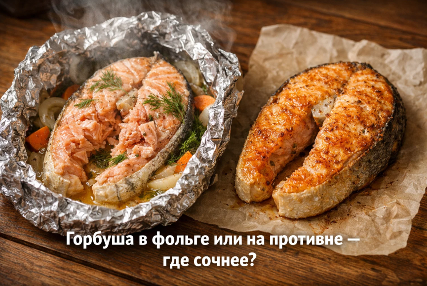 Горбуша — рыба, которую многие недолюбливают. Мол, суховата, пресновата, не чета сёмге или форели. Я и сама долго так думала, пока не начала экспериментировать с разными способами приготовления. И вот однажды решила провести честный домашний эксперимент: взяла два одинаковых стейка горбуши, один запекла в фольге, второй — просто на открытом противне. Результат меня удивил настолько, что я решила подробно обо всём рассказать.