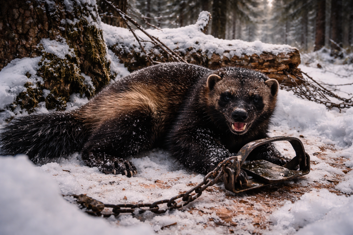 Зимой в тайге жизнь идёт по простому распорядку. Проснулся рано, натопил печь, сварил чай, проверил снасти — и в лес. Пока короткий световой день не закончился, нужно успеть обойти капканы, посмотреть следы и понять, как живёт зверь на участке. Той зимой я жил в старом зимовье на краю густого ельника. Место было хорошее для промысла — вокруг много валежника, старых кедров и небольших ручьёв, где часто держатся куница и соболь. Капканную линию я поставил ещё в начале зимы. Ничего сложного — несколько точек вдоль звериных троп, возле старых корней и поваленных деревьев. Обычно такие места куница и соболь проверяют почти каждую ночь. Утром я вышел из избушки, взял ружьё и пошёл по знакомой тропе. Мороз был сильный, снег скрипел под сапогами. В такие дни следы на снегу видны очень хорошо. Через час я подошёл к одному из капканов. И сразу заметил, что что-то не так. Снег вокруг был сильно утоптан. Местами он был взбит в комья, будто зверь долго крутился на одном месте. Я подошёл ближе. Кап