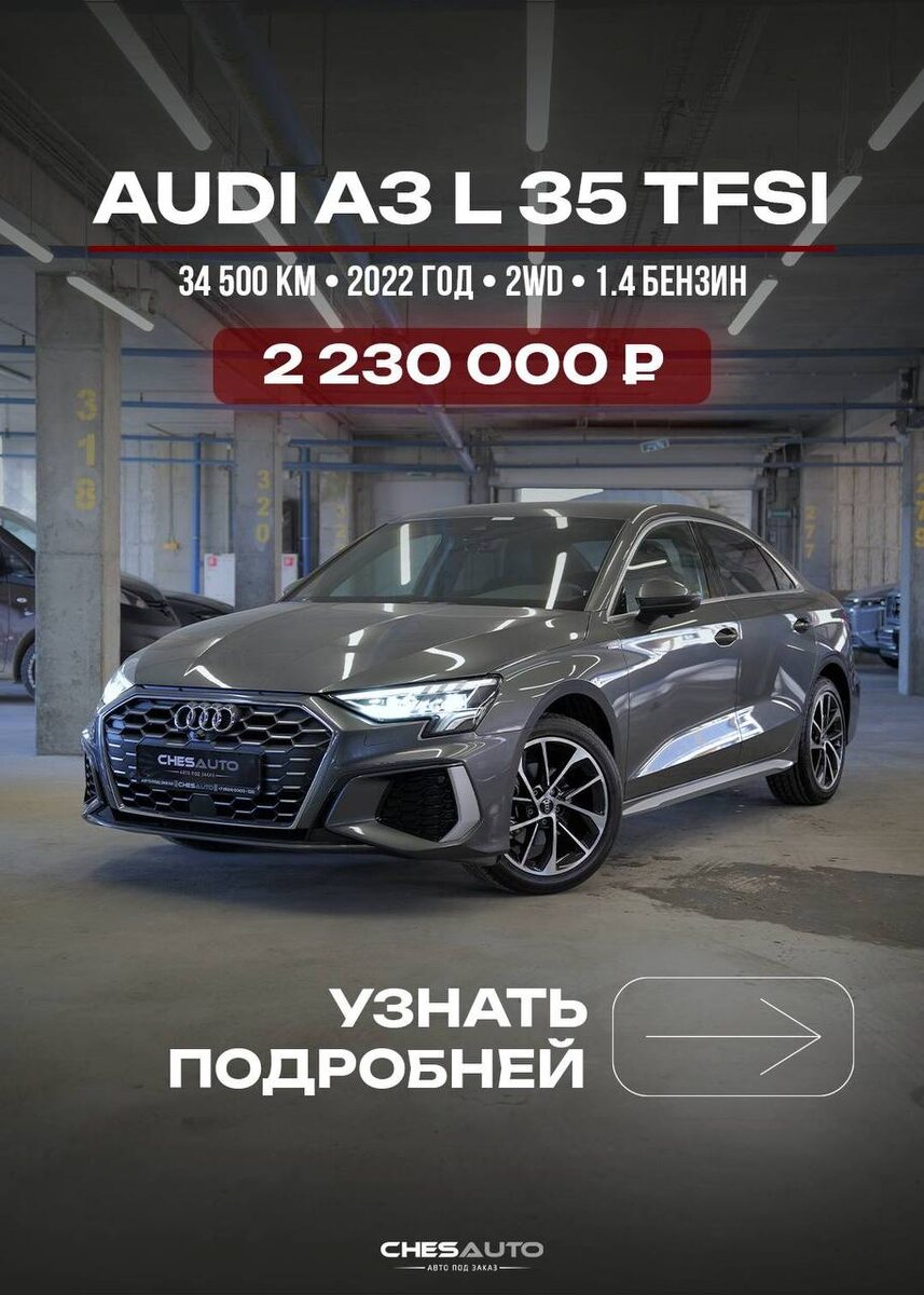 🔝 Это не просто А3. Это удлиненная версия 🚘 Audi A3 L 35 TFSI — Год выпуска: 2022 года — Пробег 34 500 км ❗️ Без единого окраса 🔥 В L-версии места для ног реально много. Теперь сзади комфортно даже высоким пассажирам — это не просто «для галочки», а полноценный простор. 📹 360-камера качество изображения, углы обзора, работа парктроников — просто космос. Парковаться — одно удовольствие, картинка четкая и информативная даже ночью. больше фотографий ⤵️⤵️⤵️⤵️⤵️⤵️⤵️⤵️⤵️