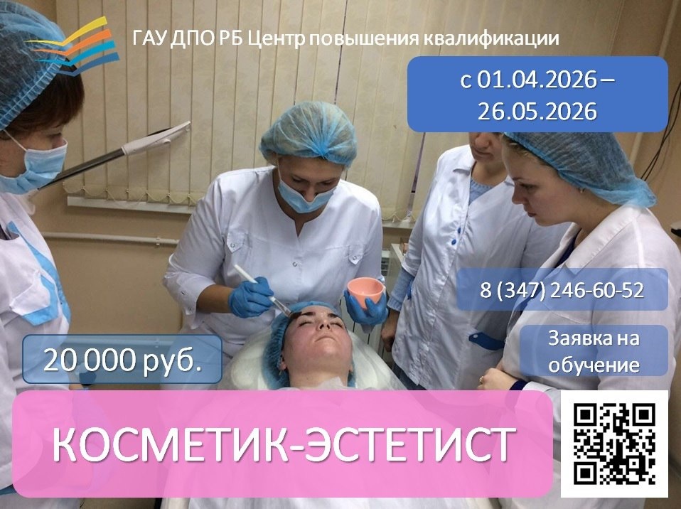 ! ✨Центр повышения квалификации приглашает всех желающих на курс профессионального обучения по программе «КОСМЕТИК –ЭСТЕТИСТ», который позволит вам с нуля освоить престижную профессию в мире косметологии! 🎓Наш курс подходит любым слушателям и не требует наличия медицинского образования! 📚Обучение проводится в малых группах и включает в себя все базовые знания и практические занятия, которые необходимы для старта в профессии. ☝️На наших занятиях вы сразу отработаете все процедуры! 🤗Мы предоставляем все расходные материалы! 📅Срок обучения: с 01.04.2026 по 26.05.2026 ⏳Длительность обучения: 252 ак.ч. (1,5 месяца) 💰Стоимость обучения: 20 000 руб. 📃После прохождения курсов, мы выдаем документ установленного образца. 📞Контактный телефон: 8(347)246-60-52. ➡️Заявку можете оставить по ссылке https://clck.ru/3SNQAA или в телеграм-чате по телефону +79033565287