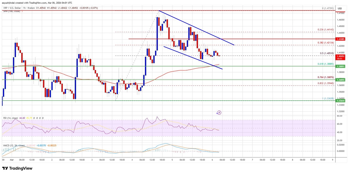 " XRP скорректировался ниже $1.4450, не удержавшись выше $1.460, но удерживает поддержку на уровне $1.3880. Аналитики ждут новой волны роста, если актив удержит текущие позиции. Откат произошел вслед за Bitcoin и Ethereum. 📊 Ключевые моменты: - XRP торгуется выше $1.380 и 100-часовой SMA. - Ключевой нисходящий канал с сопротивлением на $1.430. - Сопротивление: $1.420, $1.430, $1.450, $1.4720, $1.50, $1.5250. - Поддержка: $1.40, $1.3880, $1.3680, $1.350, $1.3350. - MACD теряет темп в бычьей зоне, RSI ниже 50. ⚠️ Риски: Пробой поддержки $1.3880 может привести к дальнейшему снижению. Горизонт: краткосрочно