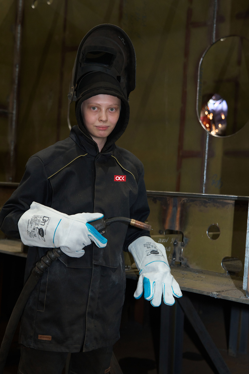 На третьем курсе Екатерина проходила производственную практику на Амурском судостроительном заводе ОСК. Трудилась в бригаде Дмитрия Руднева из сборочно-сварочного цеха, а сварщик Дмитрий Разгонов был первым ее наставником. Тогда практически весь завод был буквально взбудоражен таким явлением, как девушка-сварщица. Меня сначала в отдел главного сварщика отправили, а я в цех стала проситься, потому что варить хочу, - рассказывает Екатерина . – Специально выбрала для прохождения преддипломной практики судостроительный завод, ведь здесь сварщик – главная профессия». Хрупкая на вид, но необычайно сильная духом девушка выбрала профессию во многом благодаря отцу-военному, который чинил машины в гараже. Однажды взяв в руки держак, Катя буквально «заболела» сварным делом. Девять лет занятий греблей при доме спорта «Смена» отлично подготовили девушку к «тяжелой мужской» работе, а окружающие ее в колледже ребята и сварщики в цехе просили «не геройствовать и не надрываться». Она взяла «золото» на