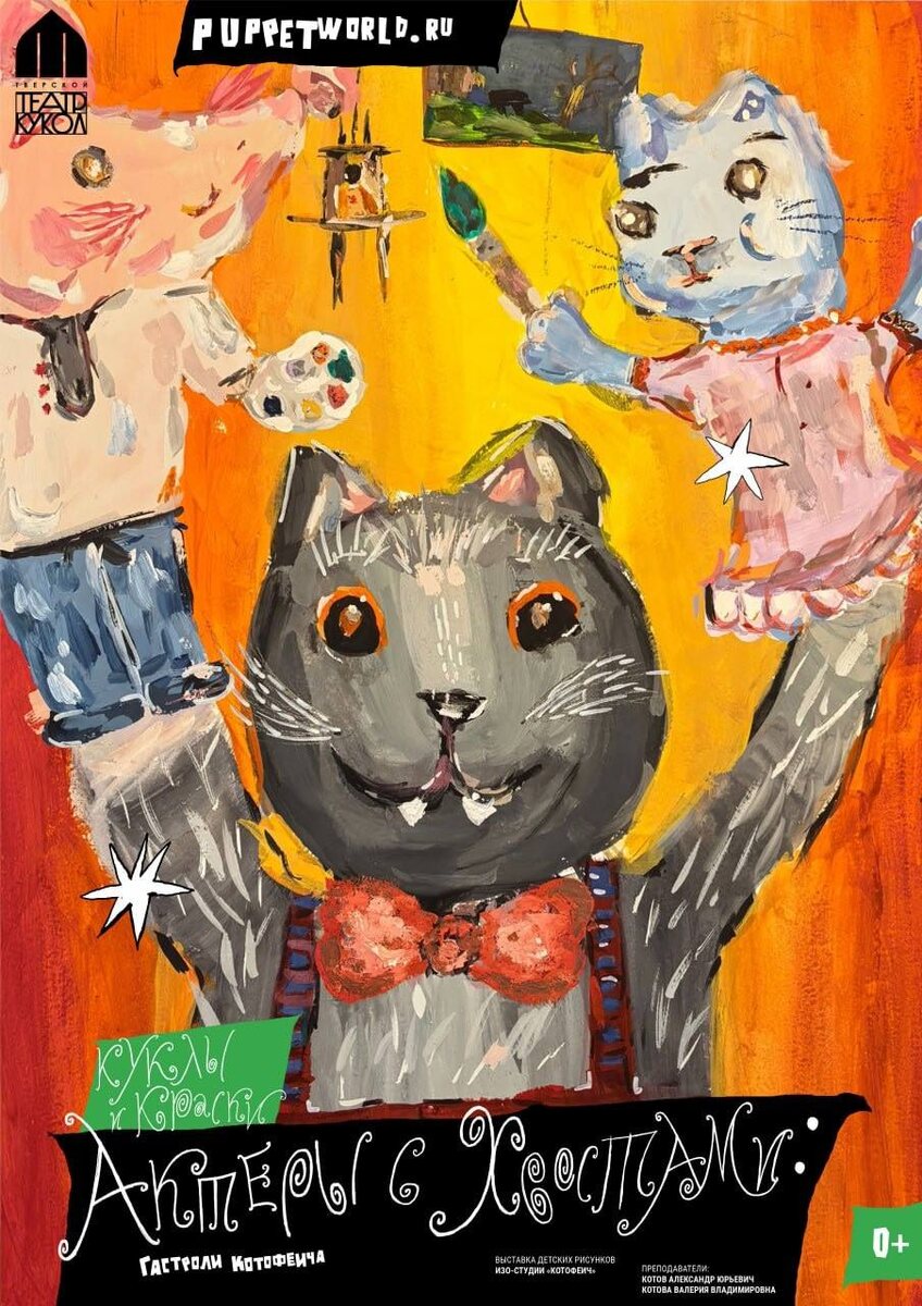 ! 🐈Спешим сообщить, что наш Театр временно… оккупирован кошками! Но не пугайтесь — это культурная оккупация ко Дню котов! 🗓️ 6 марта в фойе Театра кукол откроется Выставка детских рисунков «Актёры с хвостами: гастроли Котофеича» от Творческой студии «КОТОФЕИЧ». На работах разнообразные театральные амплуа пушистых артистов: от комических персонажей и эксцентричных героев до благородных трагиков и грациозных прим. Приходите оценить талант юных творцов и полюбоваться кошачьей труппой, готовой к своим первым гастролям! Посмотреть на усатых можно, если купить билет 🎟️ на любой спектакль в даты проведения выставки. P.S. Коты на выставку допускаются — но только в сопровождении хозяев и без попыток «занять место на витрине»! Желательно, плюшевые… Мяу‑ура! Все играют в куклы! puppetworld.ru ✈️ Театр кукол в Telegram 💙 Театр кукол ВКонтакте
