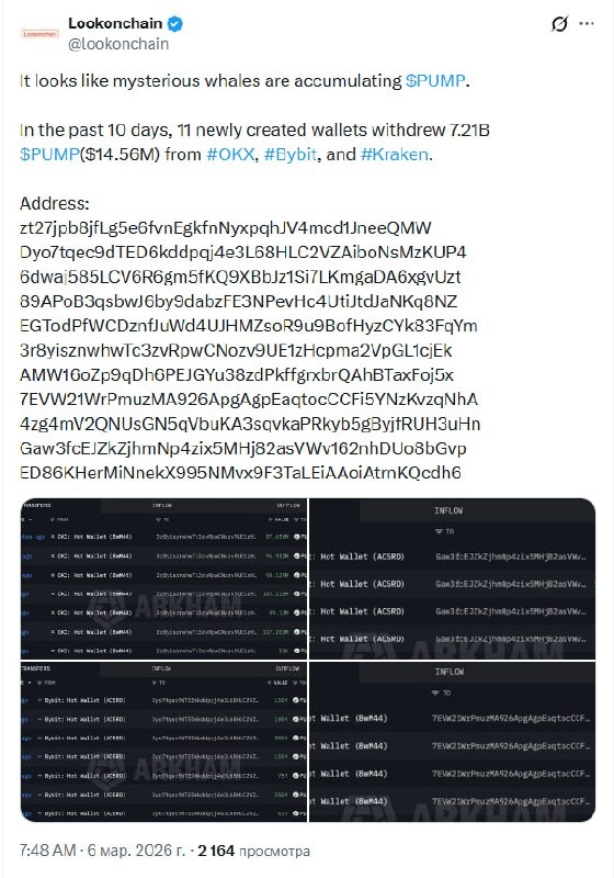 ΠΊΠΎΡΠ΅Π»ΡΠΊΠΎΠ² Π²ΡΠ²Π΅Π»ΠΈ 7,21 ΠΌΠ»ΡΠ΄ $PUMP ($14,56 ΠΌΠ»Π½) Ρ #OKX, #Bybit ΠΈ #Kraken.
