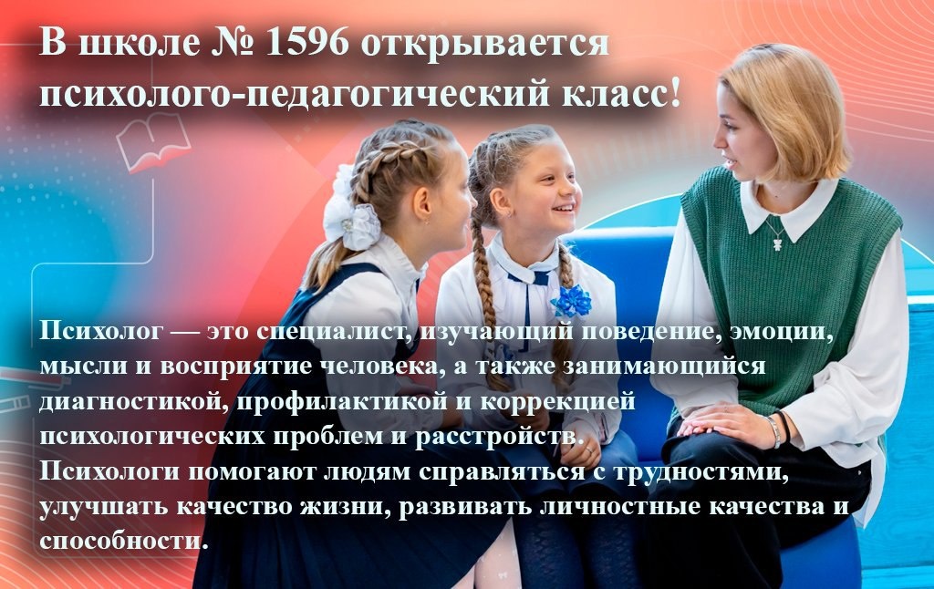 профилей: от детских психологов, логопедов и дефектологов до бизнес-психологов и психологов-консультантов. Ученики изучают на углубленном уровне биологию, математику и обществознание, а также общую физиологию, социальную психологию и основы современных нейронаук, знакомятся с профессиональной инфраструктурой в столице, учатся оказывать помощь разным категориям людей и готовятся к получению образования в сфере психологии. Как поступить? • Сдать ОГЭ по русскому языку, биологии, математике и одному предмету по выбору • Получить отметку не ниже «4» по биологии • Получить средний балл по всем предметам на ОГЭ не ниже «4» По вопросам поступления и обучения в предпрофессиональных классах обращайтесь к заместителю директора Стилиди Елене Александровне на почту stilidiea@1596.ru Время сделать первый шаг к своей будущей профессии! #Школа1596 #ДОНМ #Предпрофкласс