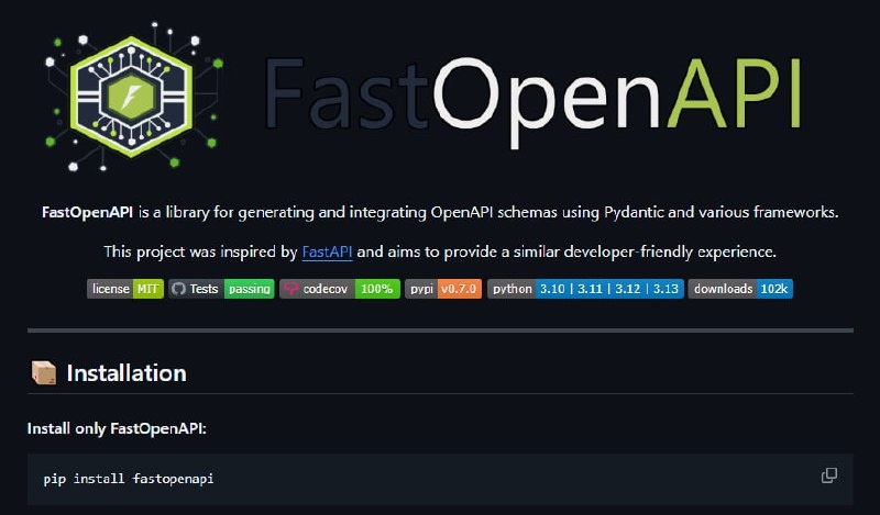 🌐 FastOpenAPI — это лёгкая и быстрая библиотека для автоматической генерации OpenAPI-документации для проектов на FastAPI с упором на