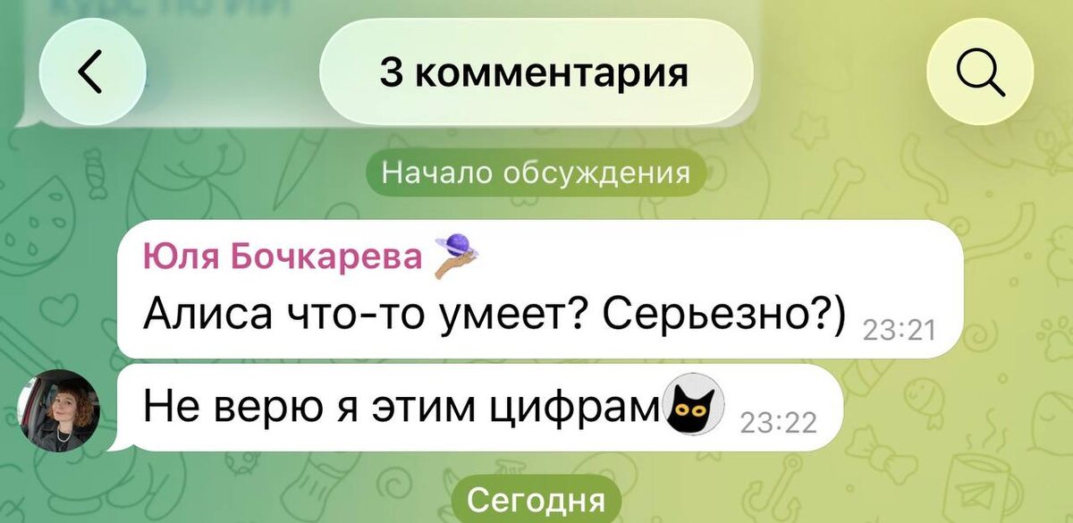 Тут моя знакомая маркетолог Юля (привет, Юль) про Алису возразила в комментариях к предыдущему посту … я ей ответил, а потом даже захотелось