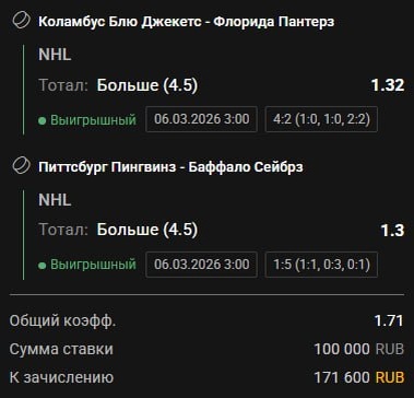 ➕➕➕Платную основу с победами! 🏒НХЛ в очередной раз не подводит и помогает нам закрыть день без единого поражения 5 из 5✅