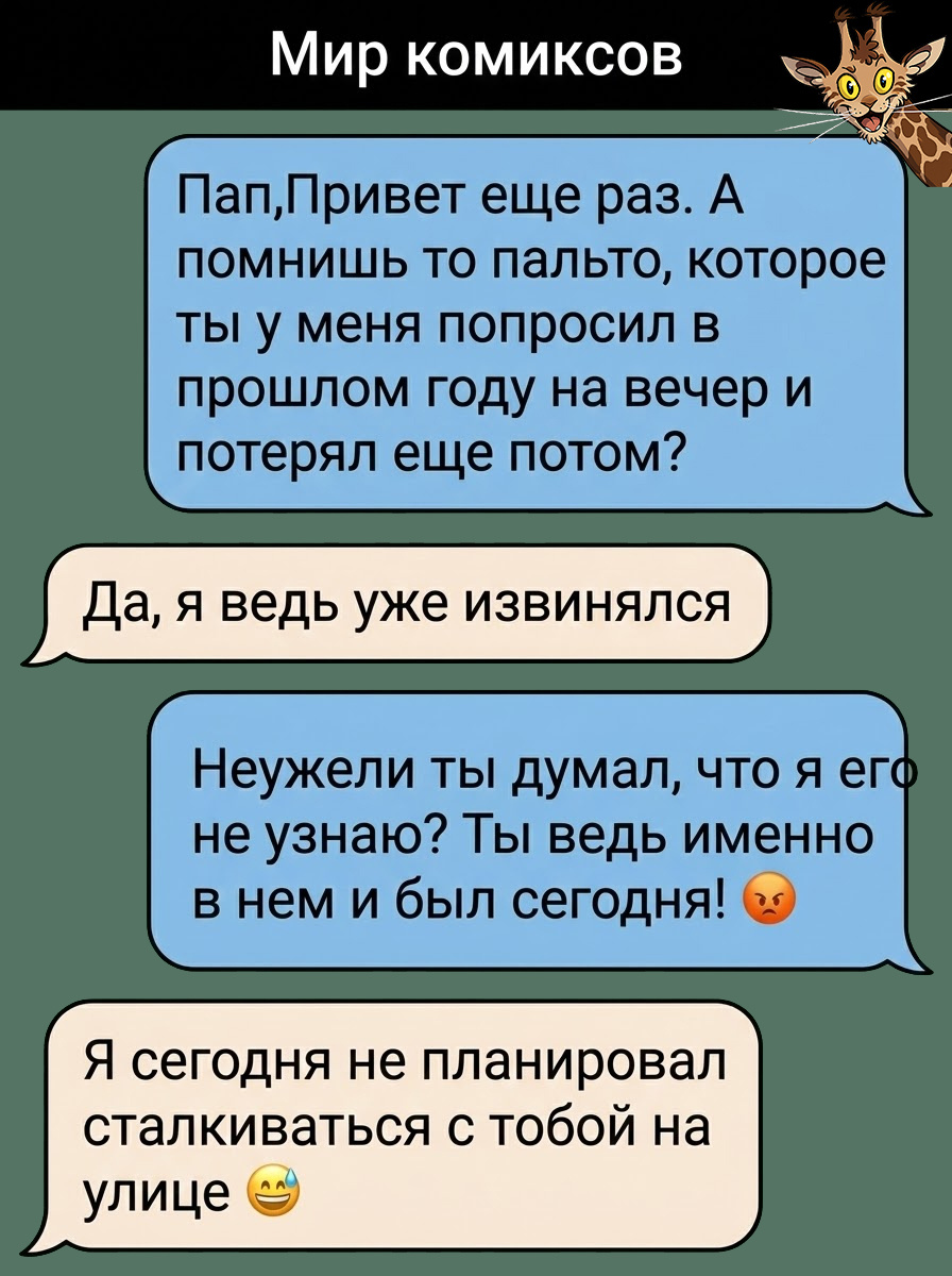 Быть отцом — это не только почётная обязанность, но и постоянная готовность к внезапным сюжетным поворотам в личке. Иногда контекст решает всё, а его отсутствие превращает обычное уточнение по поводу успеваемости в сценарий для неловкой комедии.