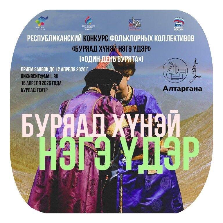 Конкурс «Один день бурята» определит участника делегации на «Алтаргану-2026» Конкурс направлен на возрождение, сохранение и популяризацию культурного наследия бурятского народа, включая материальную и духовную культуру, традиции, обряды, обычаи, язык и семейные ценности. Заявки фольклорных коллективов принимаются до 12 апреля на электронную почту onknrcnt@mail.ru вместе с заявкой-анкетой (Приложение № 1 к Положению), список участников, согласия на обработку персональных данных (Приложения № 2 и № 3), сценарий, аннотацию программы, творческую характеристику коллектива, оплатой оргвзноса. Подробная информация о требованиях к участнику можно узнать на сайте