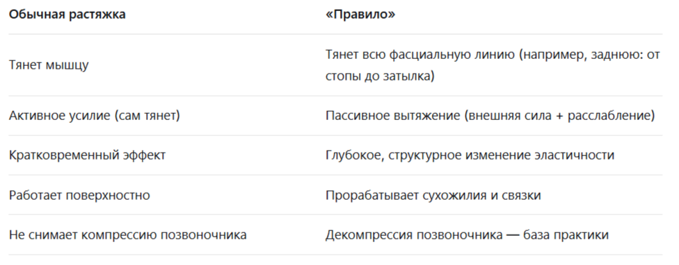 Обычно бегуны работают над силой ног и кардио, но забывают о самом главном — о соединительной ткани. «Правило» даёт бегунам то, чего не дают ни кроссовки с амортизацией, ни силовые тренировки в зале: глубинную эластичность и способность тела накапливать и отдавать энергию упруго, как пружина.