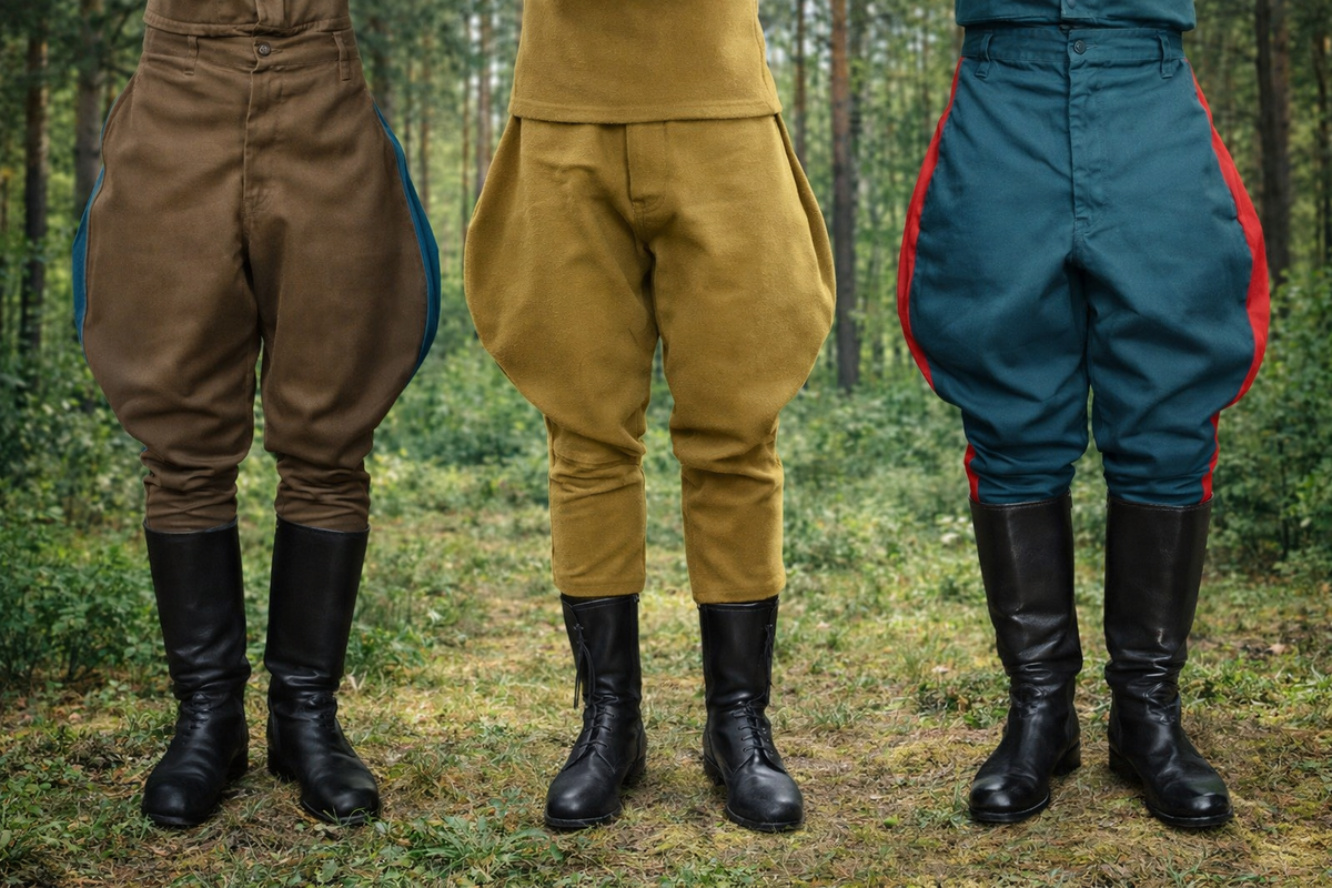 Штаны с очень широкими бёдрами и узкими голенями — галифе — долгое время были частью военной формы во многих странах. Они кажутся необычными и даже комичными для современного человека. Но на самом деле у такой формы была вполне практическая причина. Изначально галифе появились в кавалерии, где солдаты и офицеры проводили большую часть времени в седле. Название связано с французским генералом Гастоном де Галлифе (Gaston de Galliffet). Он служил во французской армии в XIX веке и популяризировал особый тип кавалерийских брюк. По одной из версий, генерал получил ранение в бедро и начал носить штаны с расширенной верхней частью, чтобы скрыть деформацию ноги. По другой версии, он просто активно продвигал такой фасон в армии. Как бы то ни было, со временем подобные брюки начали называть “галифе” по его фамилии. Главная причина — удобство при езде верхом. Когда человек сидит в седле, бёдра постоянно трутся о кожу седла и ремни. Если брюки узкие, ткань быстро изнашивается и натирает кожу. Расши