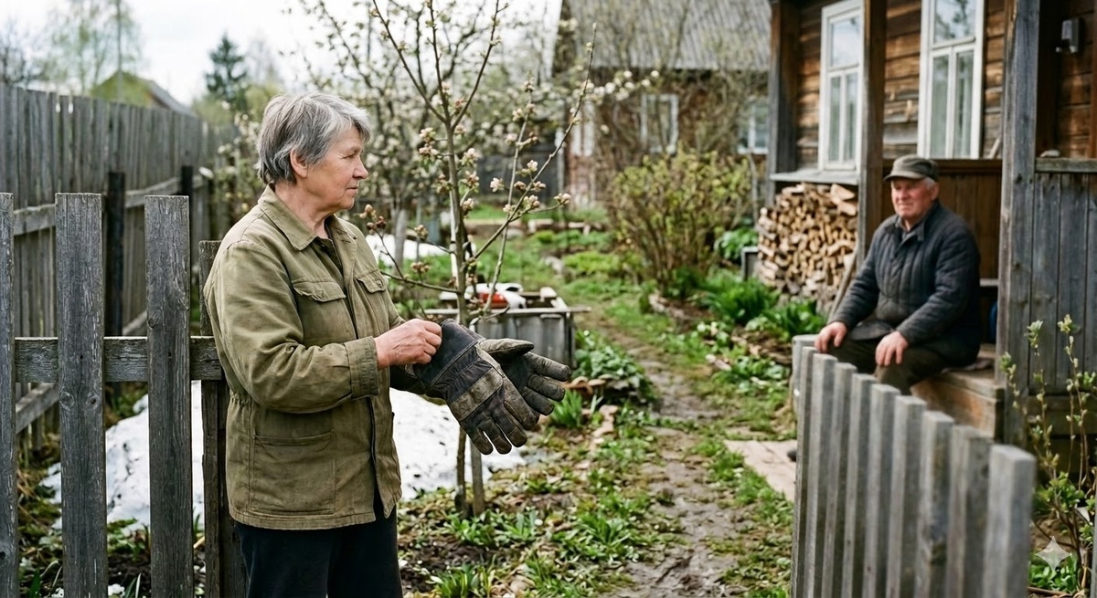 Участок зарос. Она видела это и понимала — одной не справиться. Семьдесят четыре, колени ноют, спина не гнётся как раньше. Но яблоня стояла, и Вера стояла рядом с ней, и этого было достаточно.