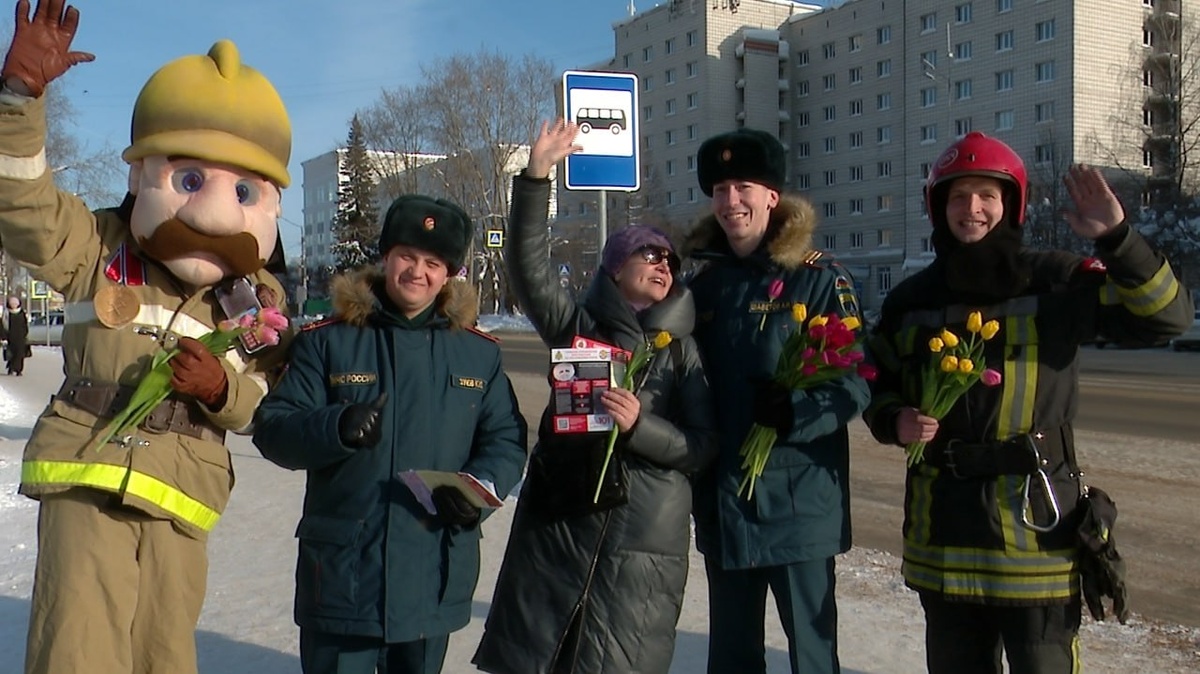 Не дожидаясь 8-го марта, спасатели поздравили сыктывкарок с Международным женским днём. Главное управление МЧС России по Коми провело свою традиционную весеннюю акцию. Пожарные вышли на улицы города, чтобы поздравить дам с наступающим праздником. По традиции вручили тюльпаны. Кроме поздравлений, спасатели рассказали прохожим, как важно установить дымовой пожарный извещатель, и напомнили о правилах безопасности на льду. Нежные тюльпаны получили и дамы в возрасте, и совсем юные жительницы столицы республики. Всем им пожелали и дальше вдохновлять сильную половину и всегда оставаться очаровательными. 📱Подпишитесь на Юрган 📲Юрган в MAX