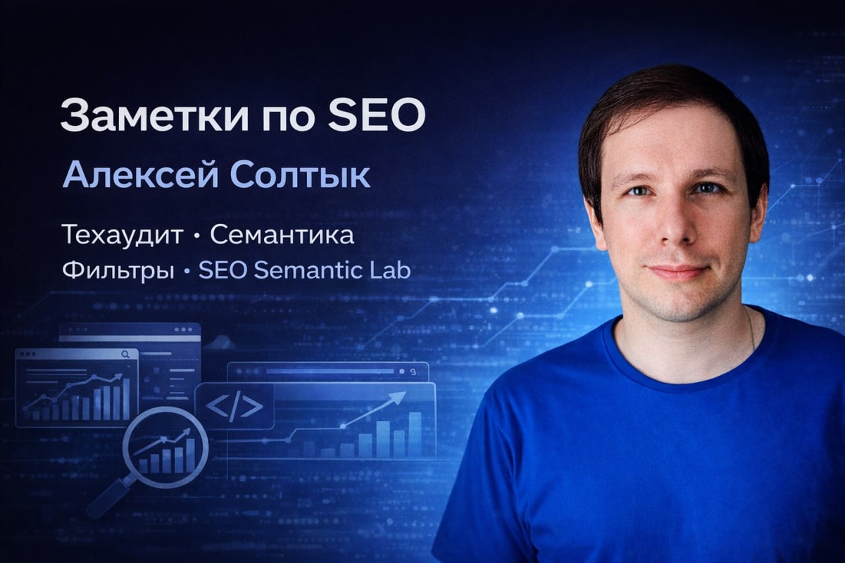 ) Автор Soltyk.ru, разработчик SEO Semantic Lab и алгоритма анализа текстов Soltyk25. Здесь публикую: — техническое SEO — семантику и кластеризацию — разборы сайтов и страниц — фильтры поисковиков — кейсы, наблюдения и SEO-инструменты Помогаю с: — техническим аудитом сайта — скорингом семантики и стратегией — консультациями по SEO — разбором просадок и фильтров — ТЗ, метатегами и контентом — доступом к SEO Semantic Lab Прайс от: техаудит — от 16 500 ₽ скоринг семантики — от 28 000 ₽ консультация — 5 000 ₽/час Для сотрудничества: @seosoltyk