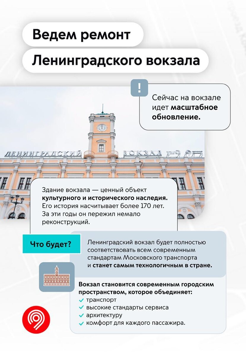 Комсомольская площадь — самый сложный и масштабный транспортный узел России. Каждый день с него отправляются около 350 тыс. человек. Он связывает поезда дальнего следования, пригородное сообщение, линии метро, МЦД и наземный городской транспорт. Это единая интегрированная система, где пересадка занимает не более 3 мин. Поэтому мы уделяем ему большое внимание и постоянно улучшаем его для жителей Москвы и Подмосковья, а также гостей города.