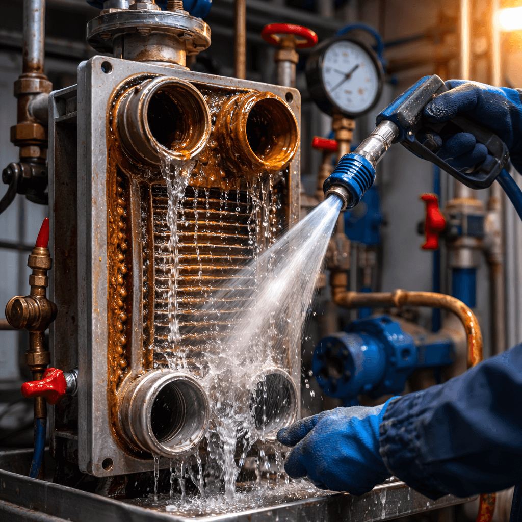 Теплообменник - один из самых важных элементов системы отопления, вентиляции и горячего водоснабжения. Он отвечает за передачу тепла от теплоносителя к воде или воздуху. Однако в процессе эксплуатации внутри теплообменника неизбежно накапливаются накипь, ржавчина и другие отложения. Со временем это приводит к снижению эффективности работы оборудования и может вызвать серьезные поломки. Разберем 5 основных признаков, которые сигнализируют о том, что теплообменник нужно срочно промывать. Один из первых и наиболее заметных симптомов - система отопления начинает работать хуже. Вы можете заметить: Чаще всего причина - слой накипи внутри теплообменника, который ухудшает передачу тепла. Даже несколько миллиметров отложений способны снизить теплоотдачу на 20-30%. Если котел или система отопления стали потреблять больше газа или электроэнергии, это может быть сигналом загрязнения теплообменника. Когда внутри теплообменника появляются отложения: В результате растут расходы на отопление, а оборуд