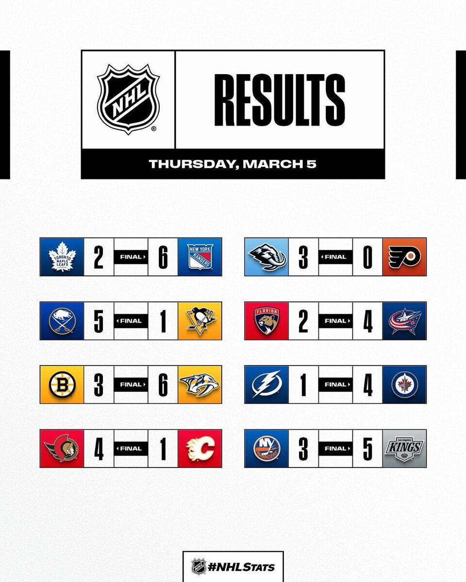 🏒 Очки россиян: 🇷🇺 Проворов («Коламбус») (1+2) 🇷🇺 Марченко («Коламбус») (0+1) 🇷🇺 Замула («Коламбус») (0+1) 🇷🇺 Гавриков («Рейнджерс») (1+0) 🇷🇺 Гридин («Калгари») (0+1) 🇷🇺 Зуб («Оттава») (0+1) 🇷🇺 Панарин («Лос-Анджелес») (1+1) 🥅 Вратари: 🇷🇺 Шестеркин («Рейнджерс») 29/31, 93,5% 🇷🇺 Тарасов («Флорида») 24/27, 88,9% 🇷🇺 Василевский («Тампа-Бэй») 26/29 89,7% 🇷🇺 Сорокин («Айлендерс») 30/35 85,7% 📱 Подпишись на НАСТОЯЩИЙ ХОККЕЙ