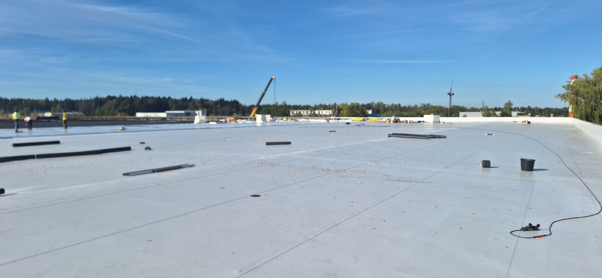 Мембранная кровля представляет собой современную гидроизоляционную систему, состоящую из полимерной мембраны толщиной около одного миллиметра. Чаще всего используются материалы ПВХ, ТПО или ЭПДМ.