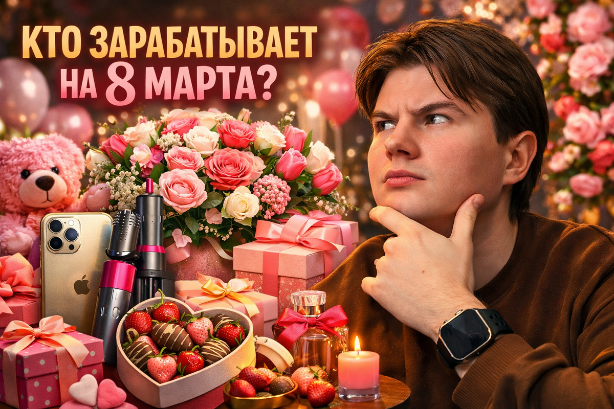 «8 марта — праздник для цветочников и ресторанов». Я каждый год смотрю на это иначе и как потребитель, и как человек, который видит чужие цифры изнутри. Вот реальная история. Один мой знакомый держит небольшой цветочный киоск. В прошлом марте выручка за 7-8 число — 800к. Радость? Нет. Потому что закупка была сделана без учёта остатков, половина букетов не продалась, а наёмный персонал получил двойную ставку за праздник. Чистая прибыль - минус 40к. Красивая витрина, кассовый разрыв внутри. Кто зарабатывает реально? Тот, кто продаёт ощущение заботы мужчинам, которые не знают, что подарить. В 2026 году это — маркетплейсы готовых подборок, сервисы last-minute доставки. Wildberries, Яндекс Маркет, Ozon — они зарабатывают на 8 марта больше, чем любой цветочник. Потому что у них нет скоропортящегося товара и нет паники на закупке. Второй бенефициар — никто не называет вслух — это b2b подарки. Компании поздравляют сотрудниц, партнёров, клиенток. Корпоративный сегмент тихо делает x3 к обычному