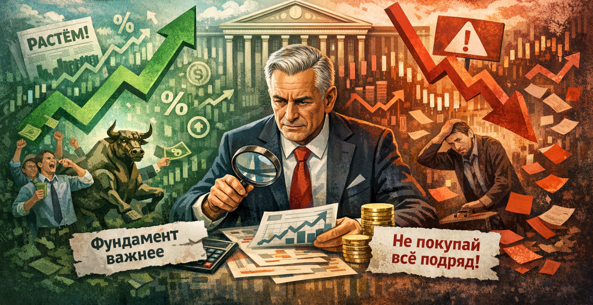Именно поэтому профессиональные инвесторы в такие периоды не покупают всё подряд. Они ещё внимательнее смотрят на фундамент.