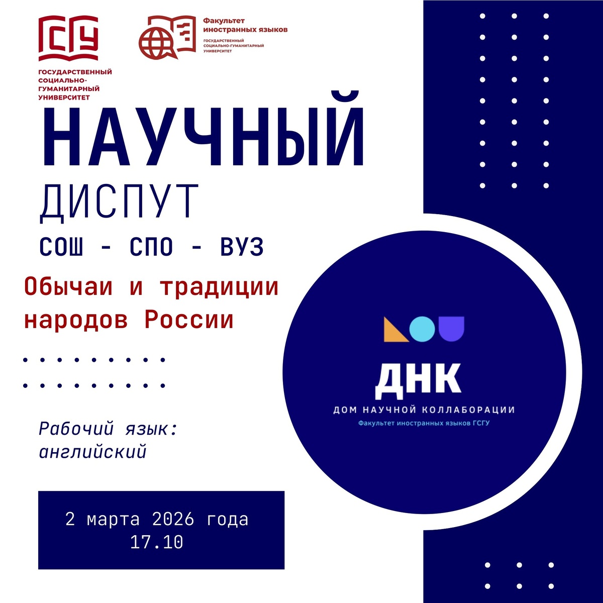 🗓 В стенах ГСГУ состоялся Региональный НАУЧНЫЙ ДИСПУТ на иностранном языке для обучающихся школ и колледжей. Мероприятие прошло в рамках проекта «Дом научной коллаборации». 🌍 Тема этого года — «Обычаи и традиции народов России» — оказалась не только актуальной, но и невероятно вдохновляющей! Участники из Зарайска, Коломны, Луховиц и Ступино блестяще представили свои исследования, продемонстрировав глубокие знания языка и культуры. 🏆 Экспертное жюри отметило высокий уровень всех докладчиков, но особая гордость — за нашу образовательную организацию! 🔥 1 МЕСТО завоевала студентка колледжа «Коломна» Строкова Ангелина! Поздравляем Ангелину и её наставника Сазонову С.В. с блестящим выступлением и заслуженной победой! ✨ Желаем всем участникам новых открытий и побед! 🚀 #КолледжКоломна #СПОмедиа