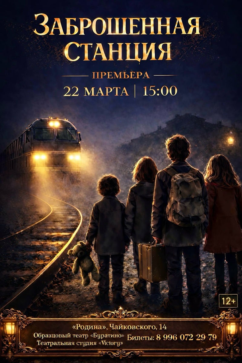 " Станция, на которую детей привозят, но обратно не забирают… Образцовый театр «Буратино» и театральная студия «Victory» представляют историю о надежде и о том, как иногда одно путешествие может изменить тебя навсегда. 🕐22 марта, 15:00 📍«Родина», Чайковского, 14 🔑билеты: 89960722979 или @vi_klubnika Предложить публикацию:@zabkulisye_bot Забкулисье в MAX